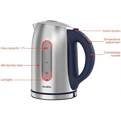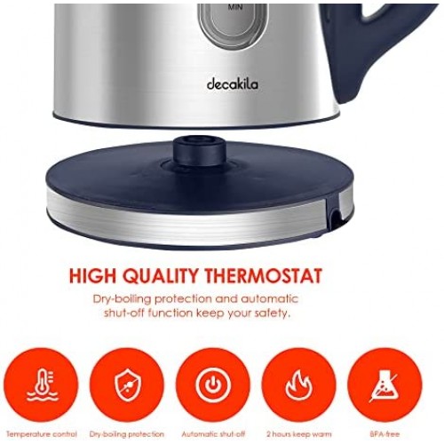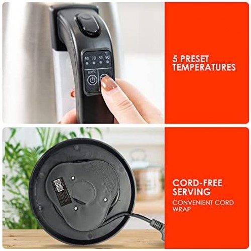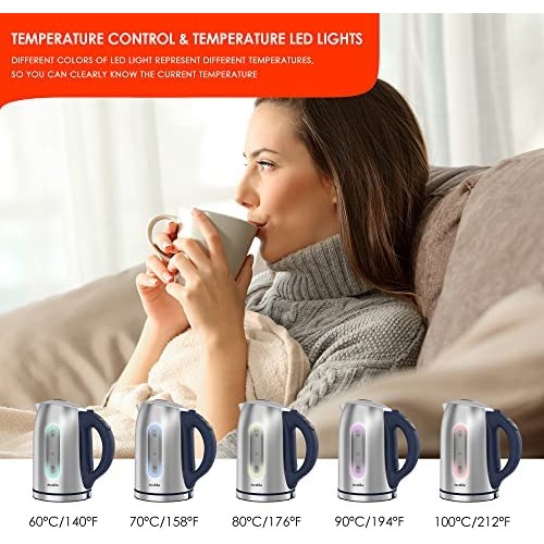- 5 preset temperature functions: DECAKILA electric kettle has 5 different temperature options (140, 158, 176, 194, 212 °F), you can set the boiling temperature according to your preference, and the kettle's own LED light will change to a different color when the temperature changes